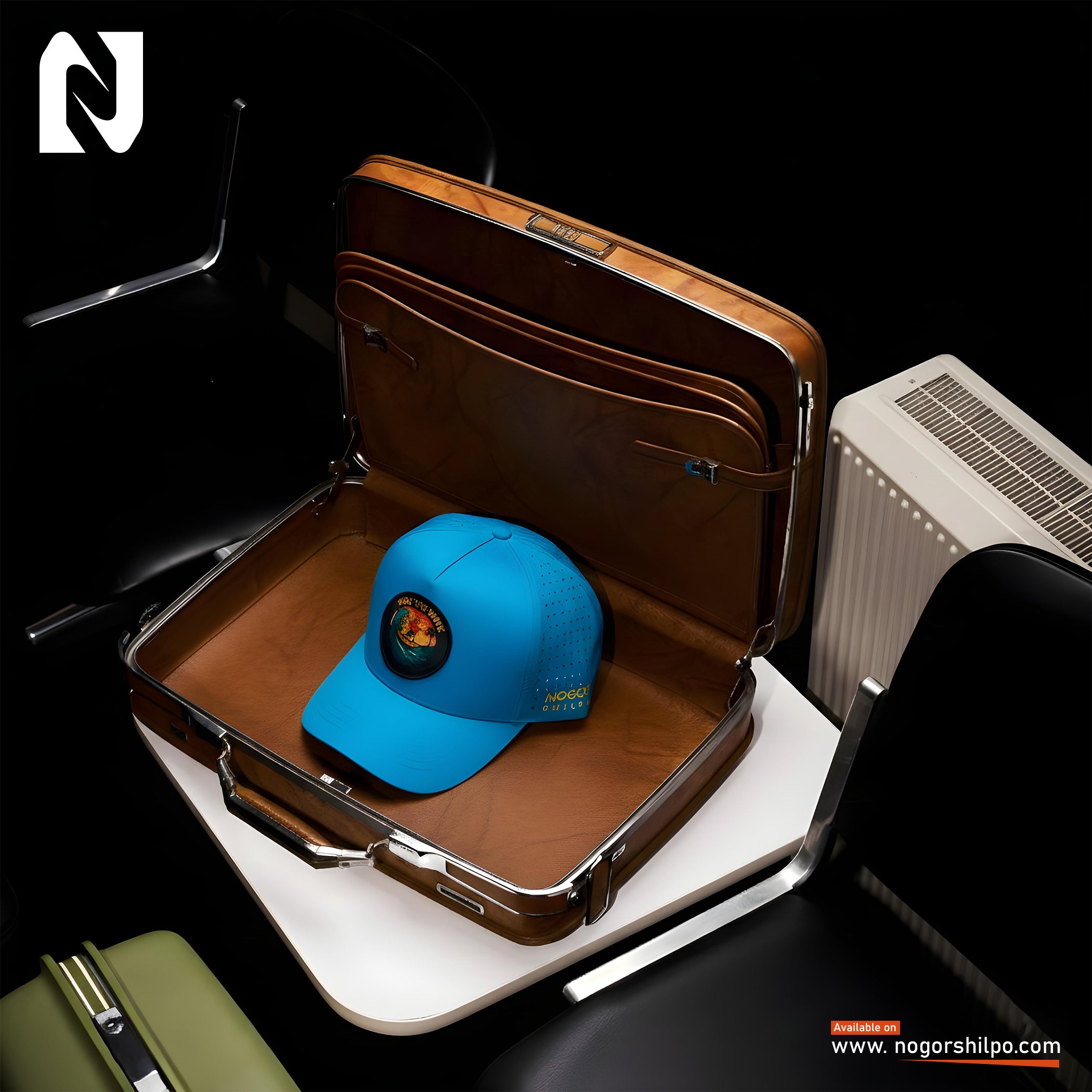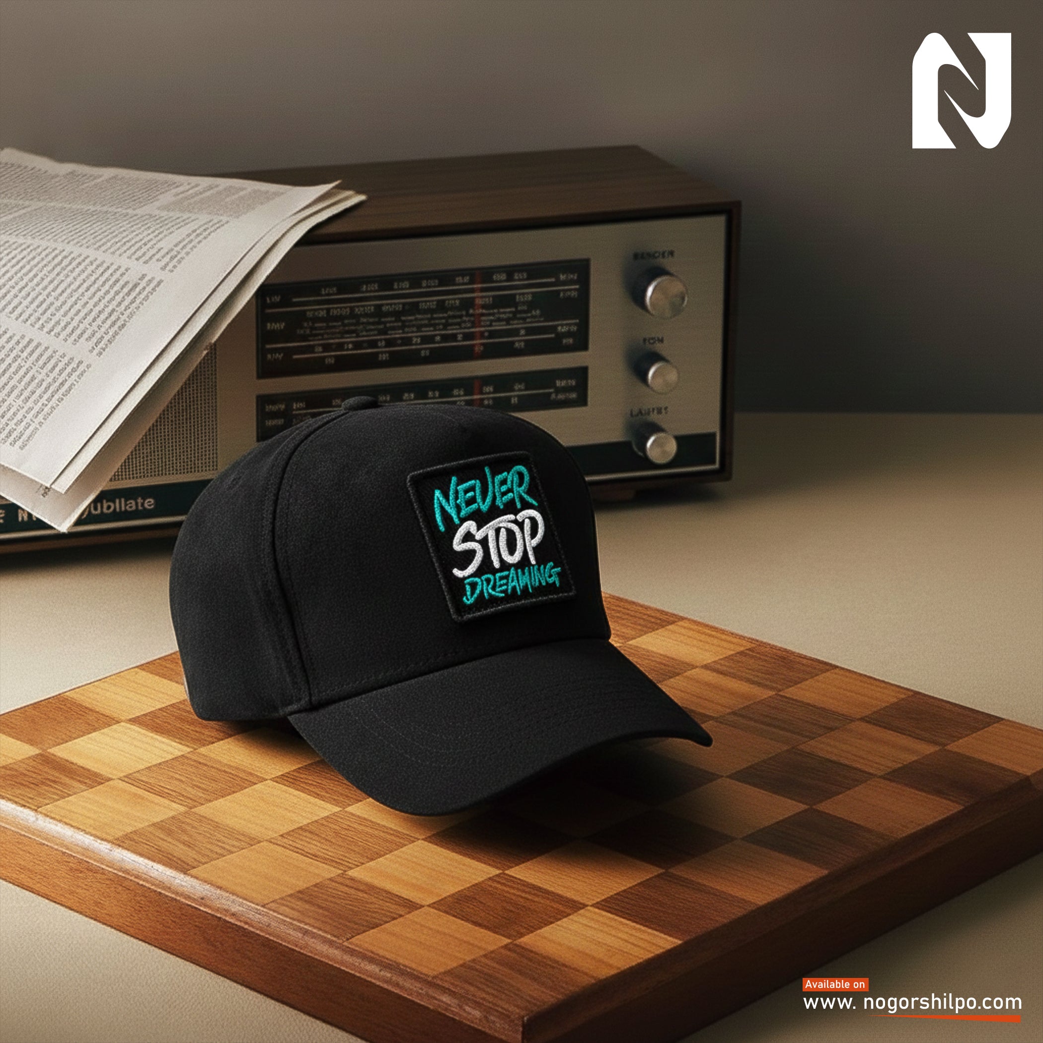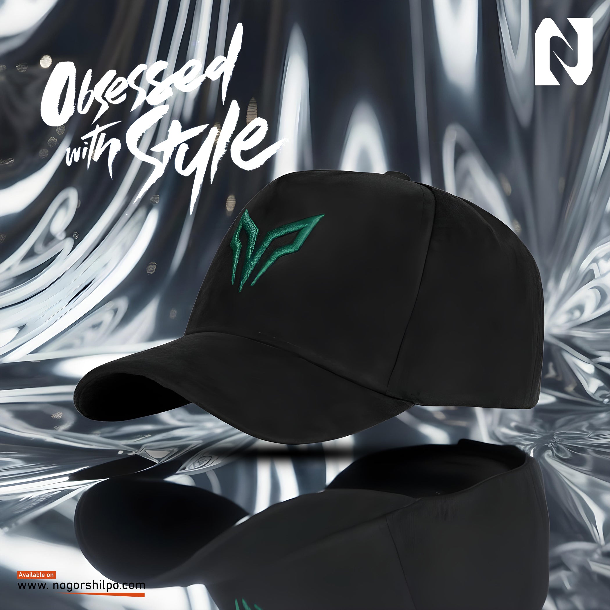 Black Premium Suede Cap – Geometric Green Embroidery